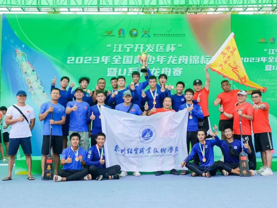 8月20日,2023年全国青少年龙舟锦标赛暨U系列龙舟赛在江苏南京落幕。经过三天的激烈角逐,泉州经贸职业技术学院男子龙舟队奋楫争先,在U23男子乙组决赛中取得200米和500米直道赛第1名、100米直道赛第3名,并以24分的总成绩位列团队第一。