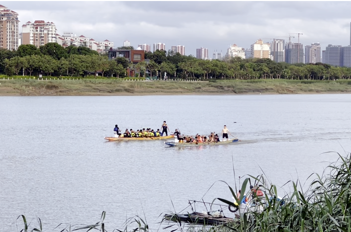 鲤城区浮桥龙舟队老队员与泉州经贸职业技术学院男子龙舟队“模拟对抗”